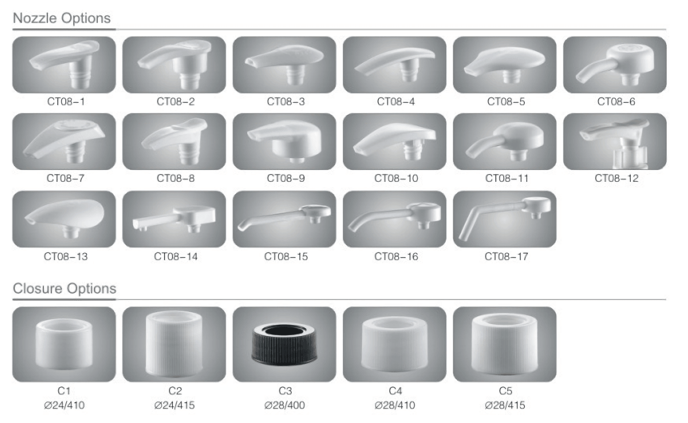 2. Olika typer av stängningsstorlek matchar med mer vanliga flaskor.